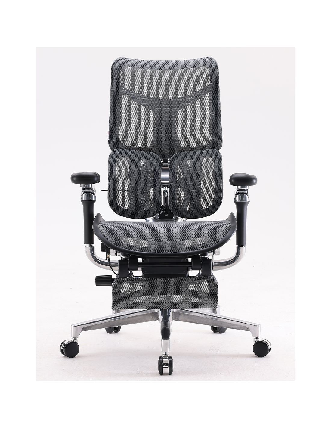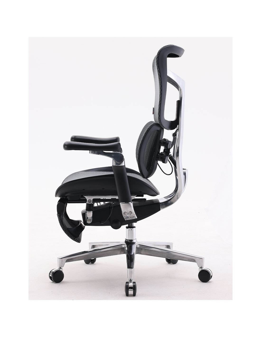 - Поперекова підтримка: адаптивна, дозволяє регулювати висоту і жорсткість. Подвійна поперекова опора у формі крила має дві накладки, які згинаються, щоб відповідати вашій нижній частині спини, адаптуючись до різних типів тіла та положень сидіння.