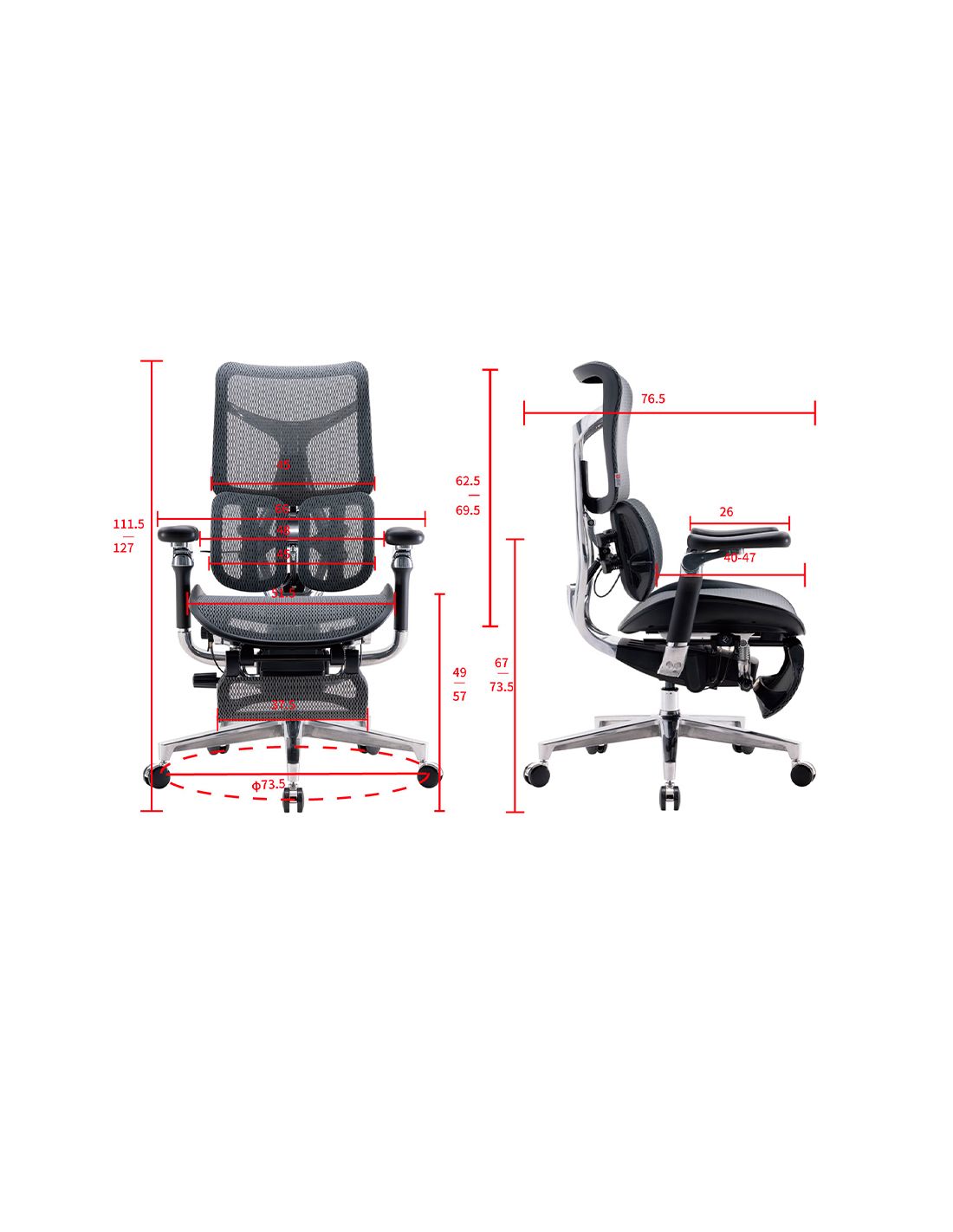 Розміри офісного сітчастого крісла SIHOO DORO S300