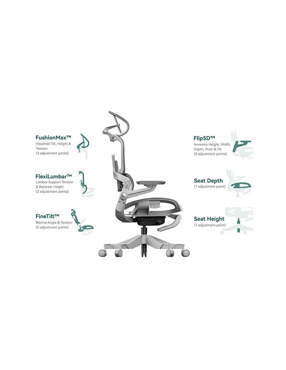 Країна: Сінгапур. Клас: ергономічне. Створене для тривалої роботи та відпочинку, крісло HINOMI H1 Pro - це універсальне і корисне для здоров'я ергономічне крісло, що ідельно підходить як для офісу, так і для домашнього робочого місця. Завдяки унікальній системі FlexiLumbar™ з 5-ти рівневим регулюванням висоти спинки і 4-ма рівнями жорсткості поперекової підтримки, ви отримуєте точне налаштування під форму своєї спини та зменшення навантаження протягом усього робочого дня. Основа: нейлон. Оббивка: сітка (100 тис. циклів), чорний колір. Механізм: синхронний. Регулювання: висота крісла; глибина сидіння (слайдер-механізм); висота спинки, фіксація нахилу, жорсткість поперекової підтримки, жорсткість гойдання. Підлокітники: 5D. Підголівник: 3D. Навантаження: 120 кг. Гарантія: 3 роки.