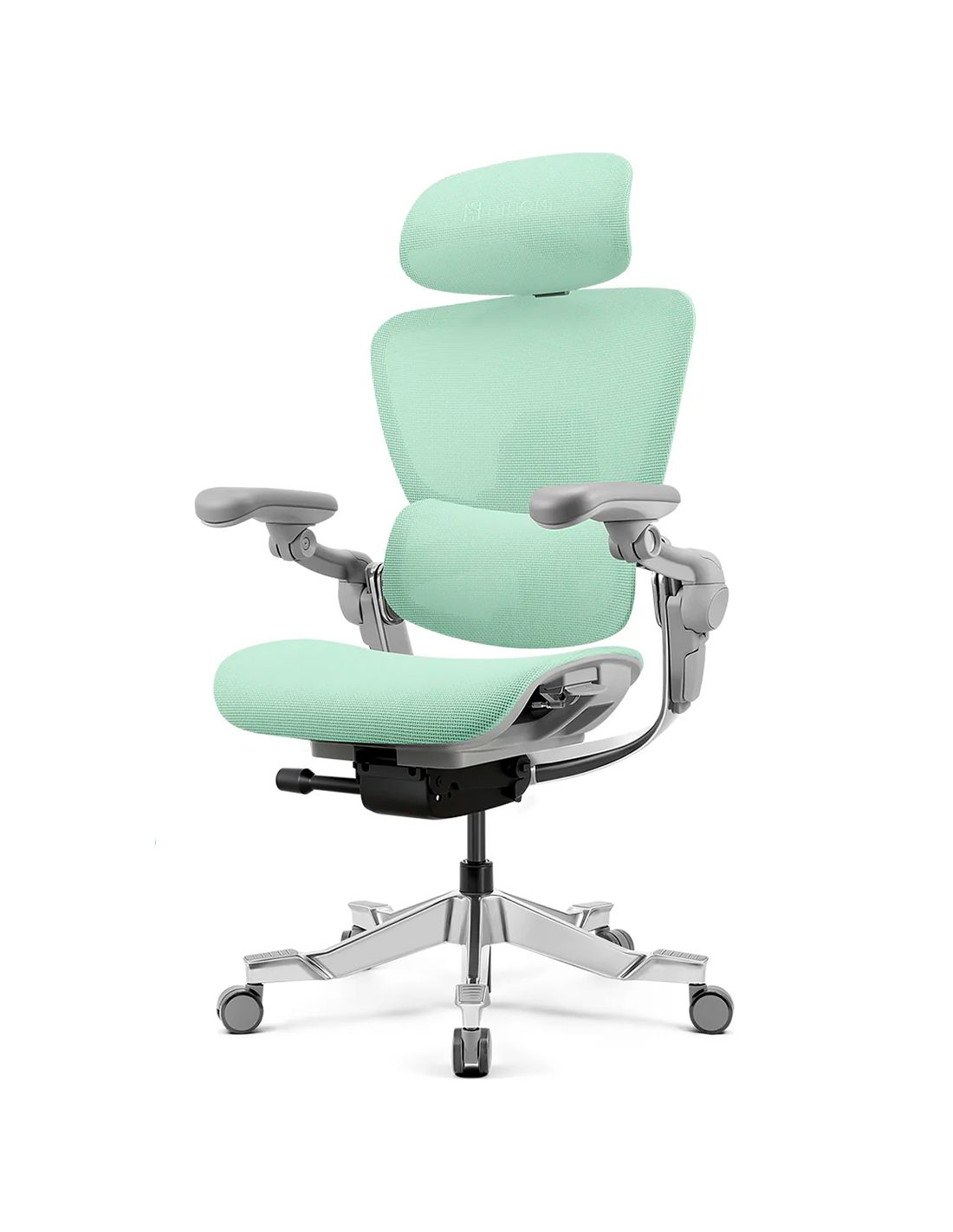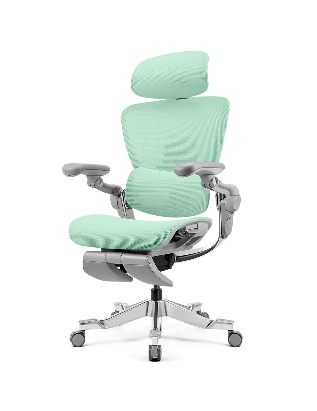 Країна: Сінгапур. Клас: ергономічне. Офісне крісло HINOMI H2 Pro створене для ідеального поєднання стилю, ергономічності та довговічності. Розширений діапазон регулювання та високоякісні матеріали забезпечують оптимальну підтримку хребта, покращуючи здоров'я спини та підвищуючи ефективність роботи. Основа: алюміній полірований. Оббивка: сітка (100 тис. циклів), зелений колір. Механізм: синхронний. Регулювання: висота крісла, глибина сидіння (слайдер-механізм), висота спинки, фіксація нахилу, висота та глибина поперекової підтримки. Підлокітники: 6D. Підголівник: 3D. Навантаження: 120 кг. Гарантія: 3 роки.