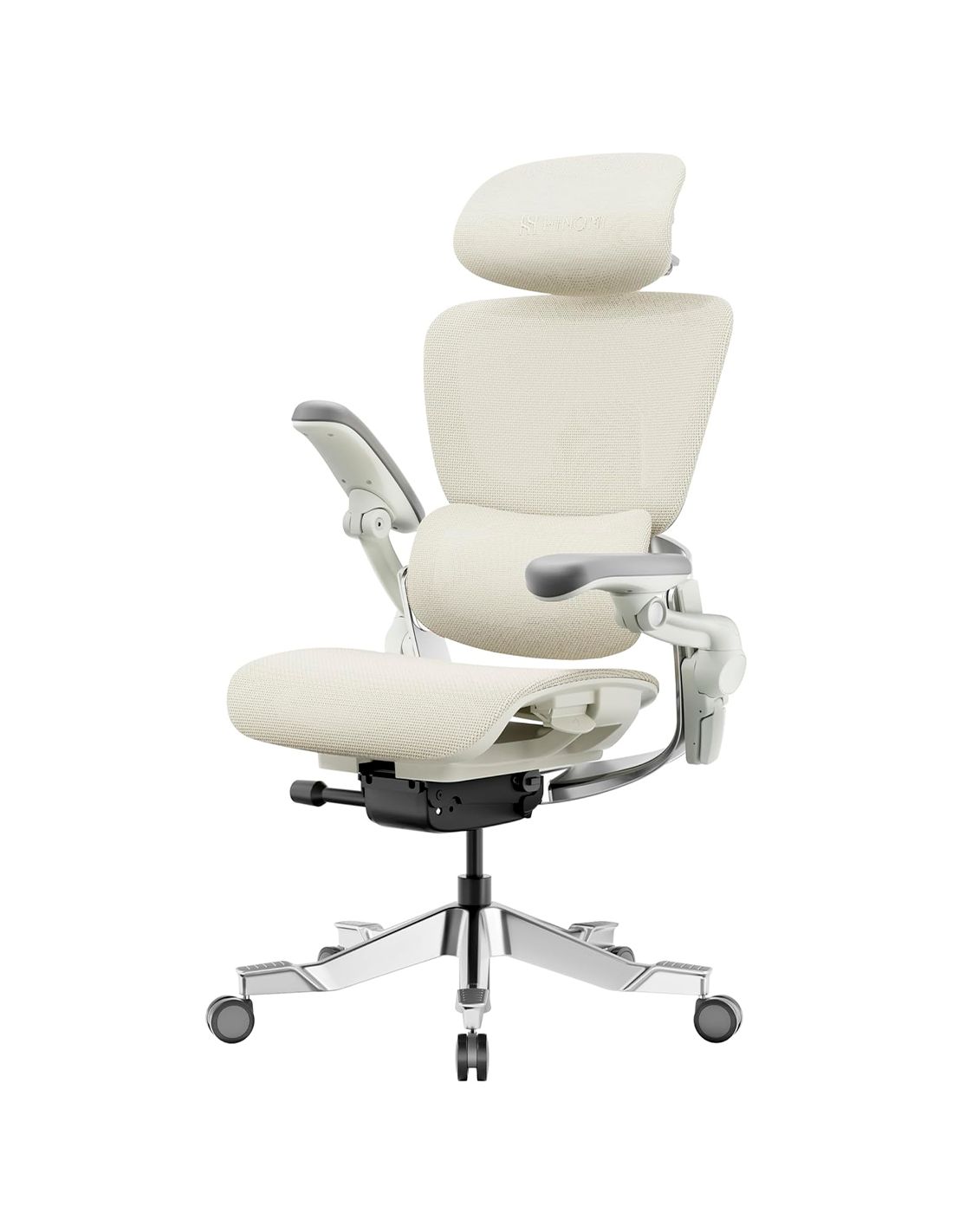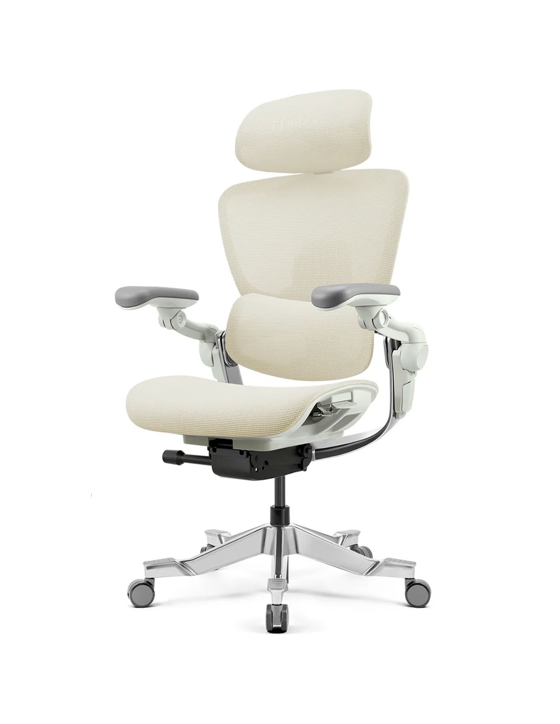 Країна: Сінгапур. Клас: ергономічне. Офісне крісло HINOMI H2 Pro створене для ідеального поєднання стилю, ергономічності та довговічності. Розширений діапазон регулювання та високоякісні матеріали забезпечують оптимальну підтримку хребта, покращуючи здоров'я спини та підвищуючи ефективність роботи. Основа: алюміній полірований. Оббивка: сітка (100 тис. циклів), кремовий колір. Механізм: синхронний. Регулювання: висота крісла, глибина сидіння (слайдер-механізм), висота спинки, фіксація нахилу, висота та глибина поперекової підтримки. Підлокітники: 6D. Підголівник: 3D. Навантаження: 120 кг. Гарантія: 3 роки.