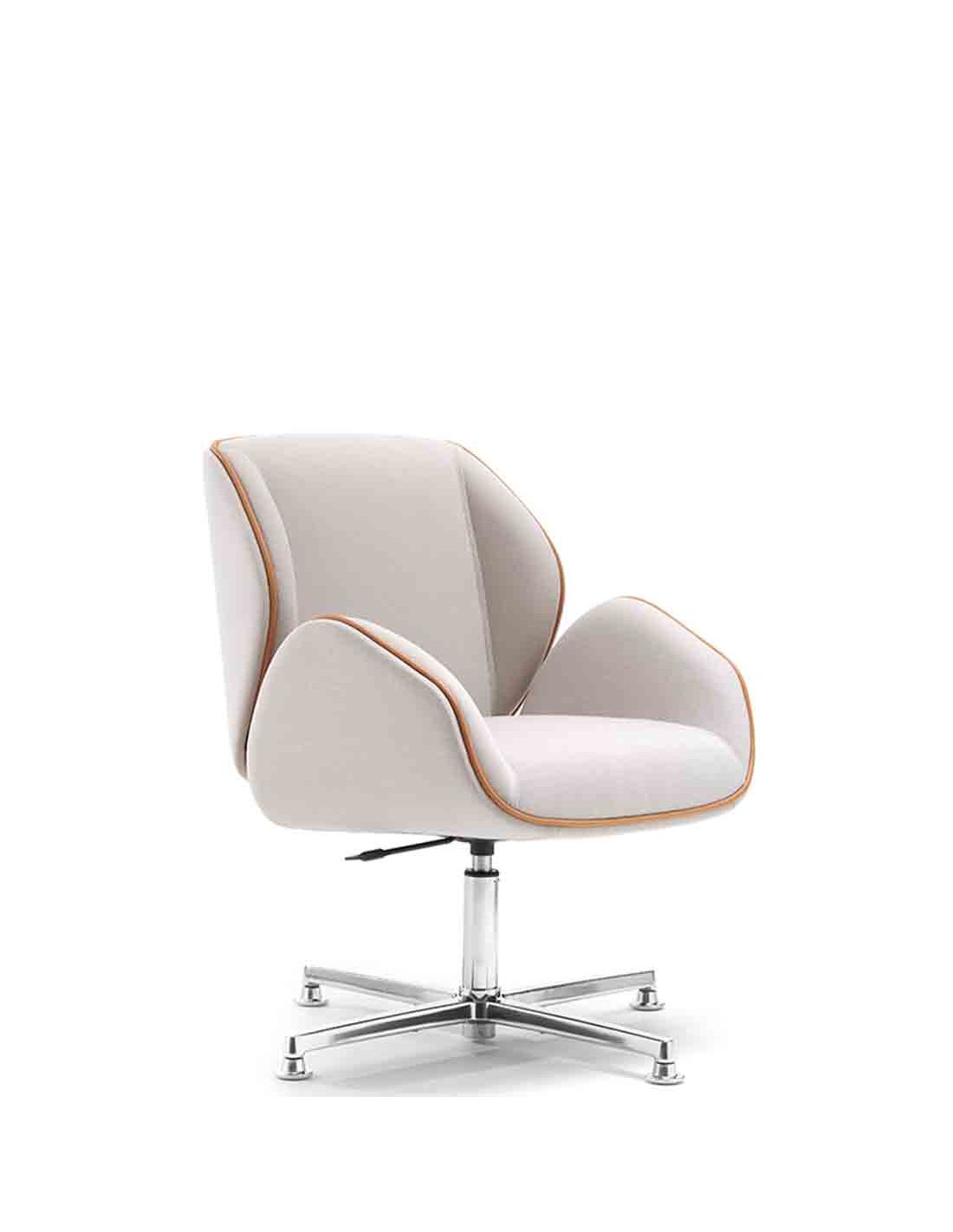 Країна: Італія. Клас: конференц-крісло, крісло для відвідувача. Сучасне крісло із скульптурною спинкою. Поєднання класики та сучасності, а також його оригінальний профіль робить його ексклюзивним елементом в будь-якому інтер'єрі. Чудово підходить для офісів, конференц-залів і домашніх офісів. Suoni Guest SI06K - модель з повністю оббитим корпусом (шкіра або тканина), 4-х променевою хрестовиною без коліс. Крісло поворотне, регулюється по висоті. Декоративна вставка в профіль крісла - додаткова опція. Навантаження: 120 кг. Гарантія: 5 років.