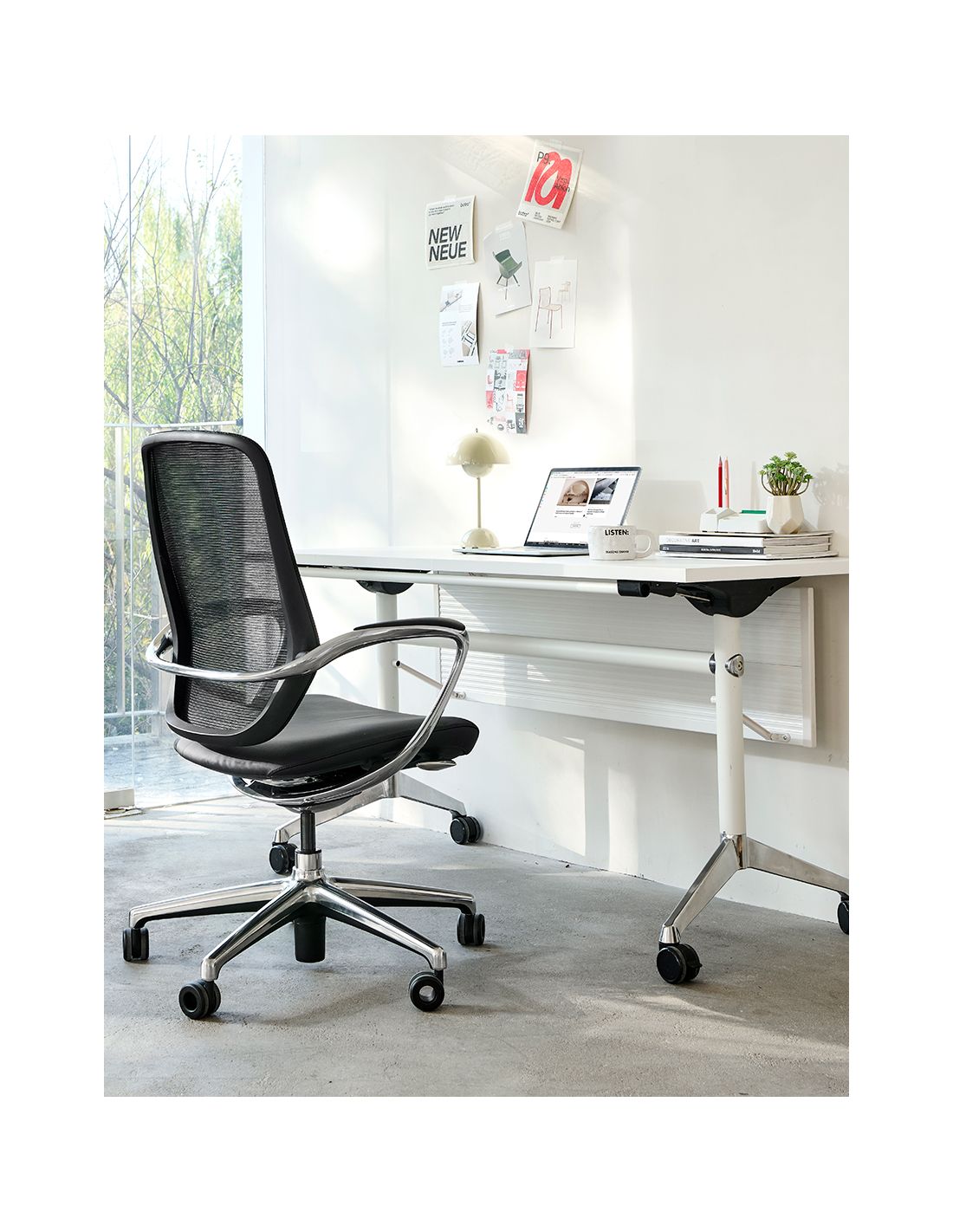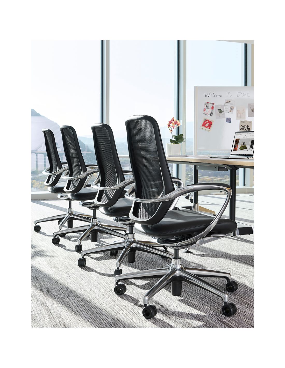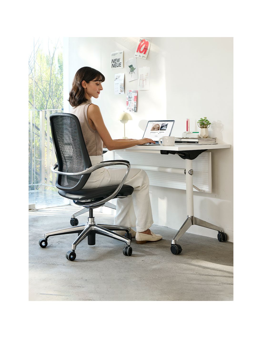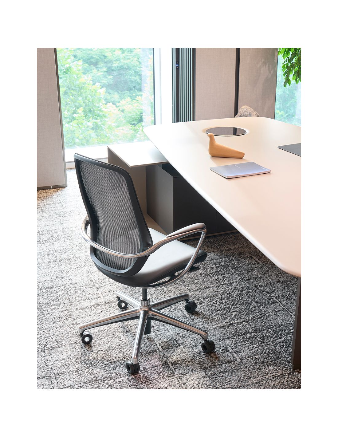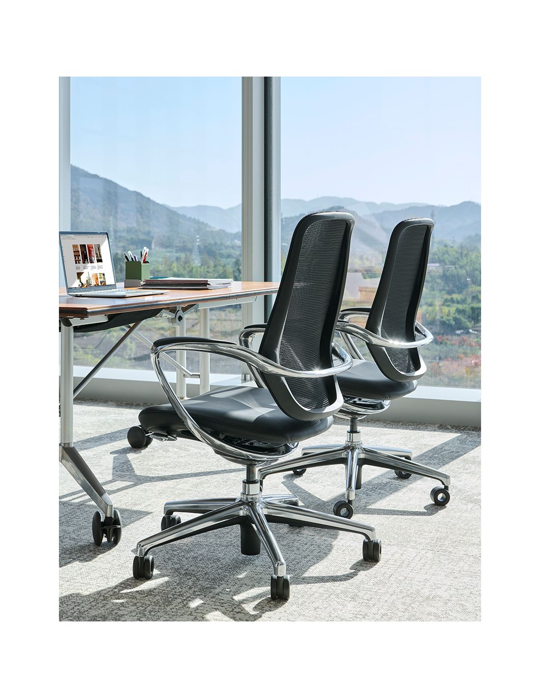 Країна: Китай. Клас: ергономічне. HIME - крісло, що надасть вишуканості будь-якому інтер'єру. Елегантні, плавні лінії та алюмінієва опора конструкції створюють легку, але міцну основу. Органічні вигини крісла та плаваюча спинка забезпечують комфорт навіть під час тривалого користування. Основа: полірований алюміній. Оббивка: сітка, тканина. Регулювання: висота крісла, блокування спинки у вихідному положенні. Підлокітники: нерегульовані. Навантаження: 120 кг. Гарантія: 3 роки.