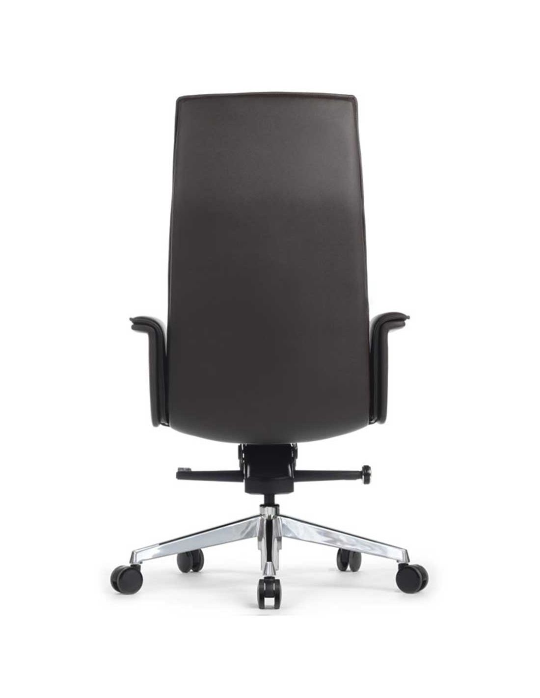 Країна: Китай. База: алюміній. Клас: крісло керівника. Обивка: шкіра, коричнева. Механізм: синхронний. Регулювання: висота посадки, фіксація гойдання, жорсткість гойдання. Підголівник: не регульований, висока спинка. Підлокітники: не регулюються. Максимальне навантаження: 120 кг. Гарантія: 3 роки.