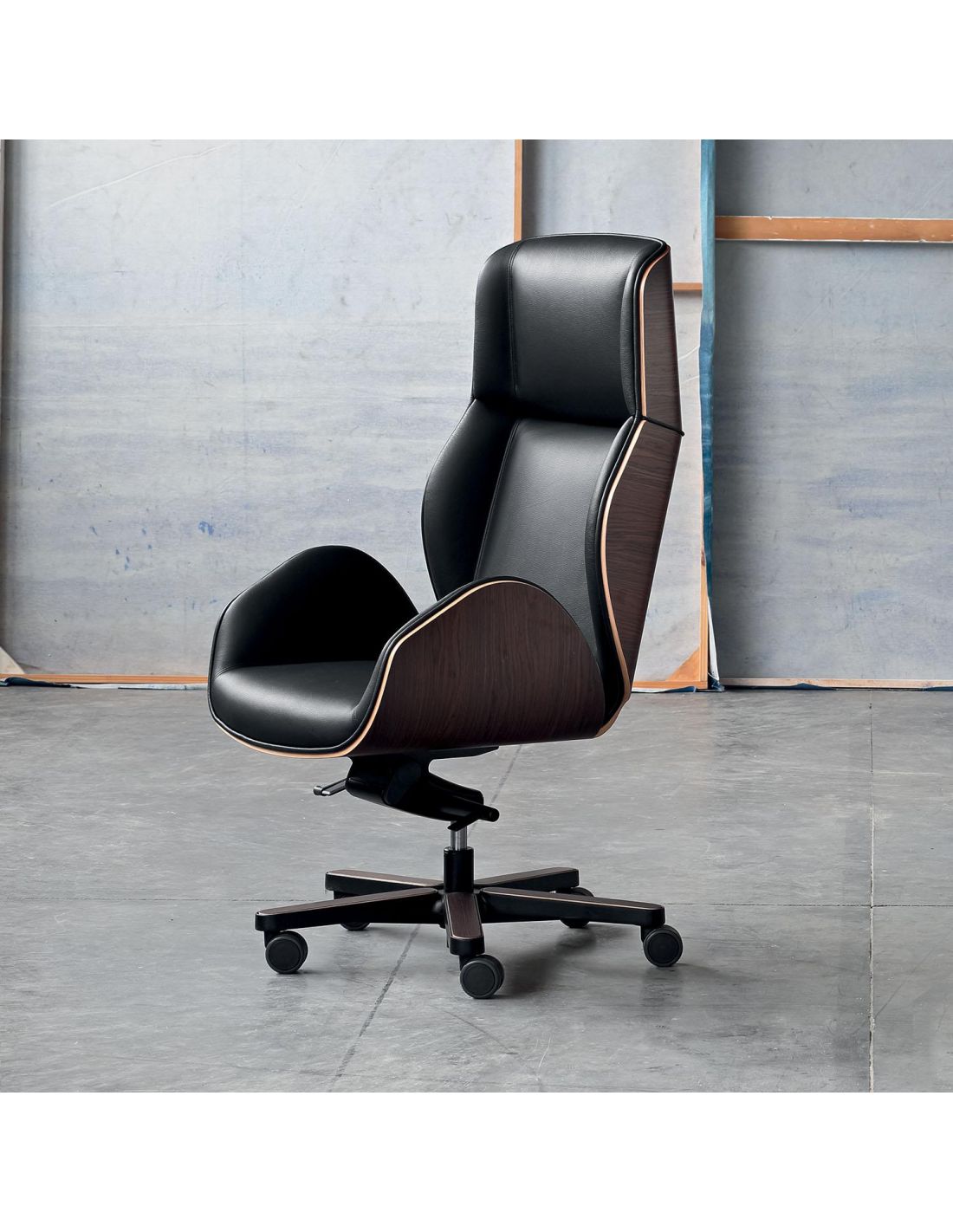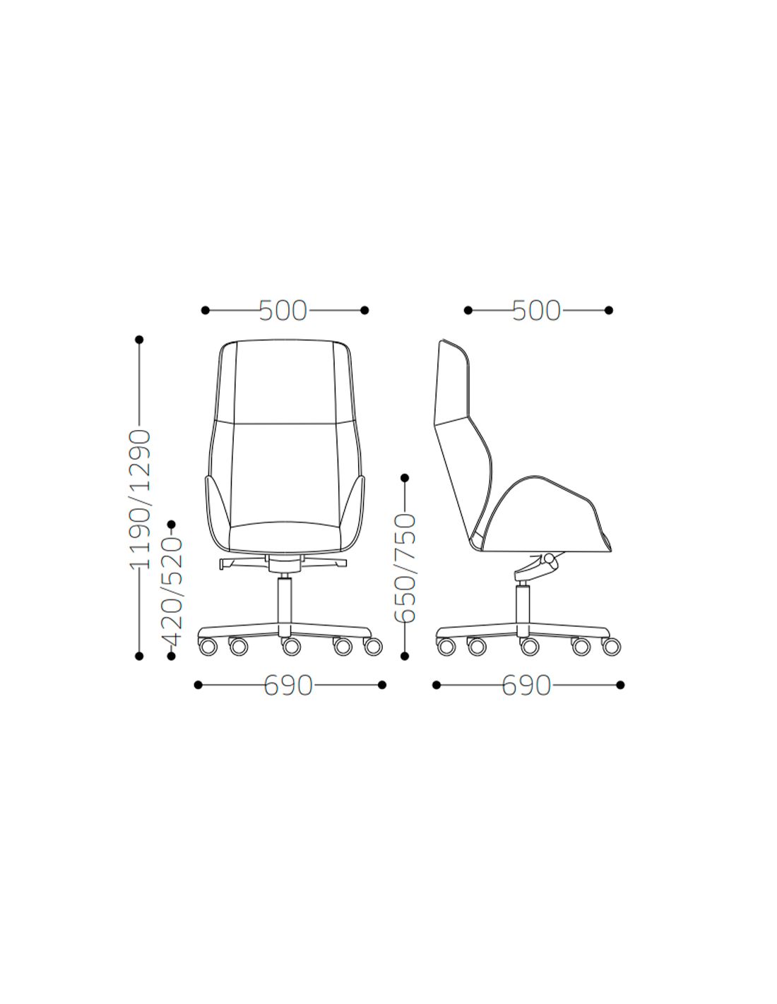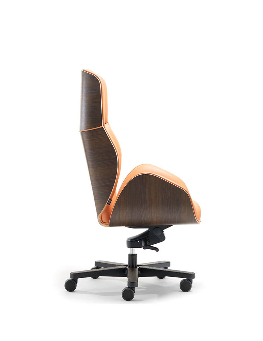 Країна: Німеччина. Основа: алюміній. Матеріал: шкіра. Клас: hi end. Регулювання: висота крісла, висота поперекової опори, фіксація нахилу спинки в будь-якому положенні, жорсткість гойдання, регульований підголівник. Навантаження: 120 кг. Гарантія: 5 років.