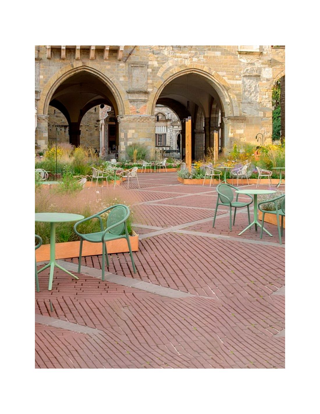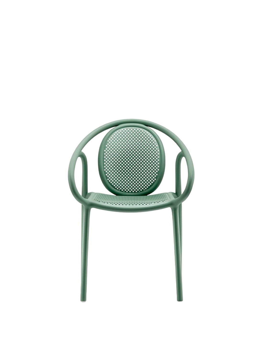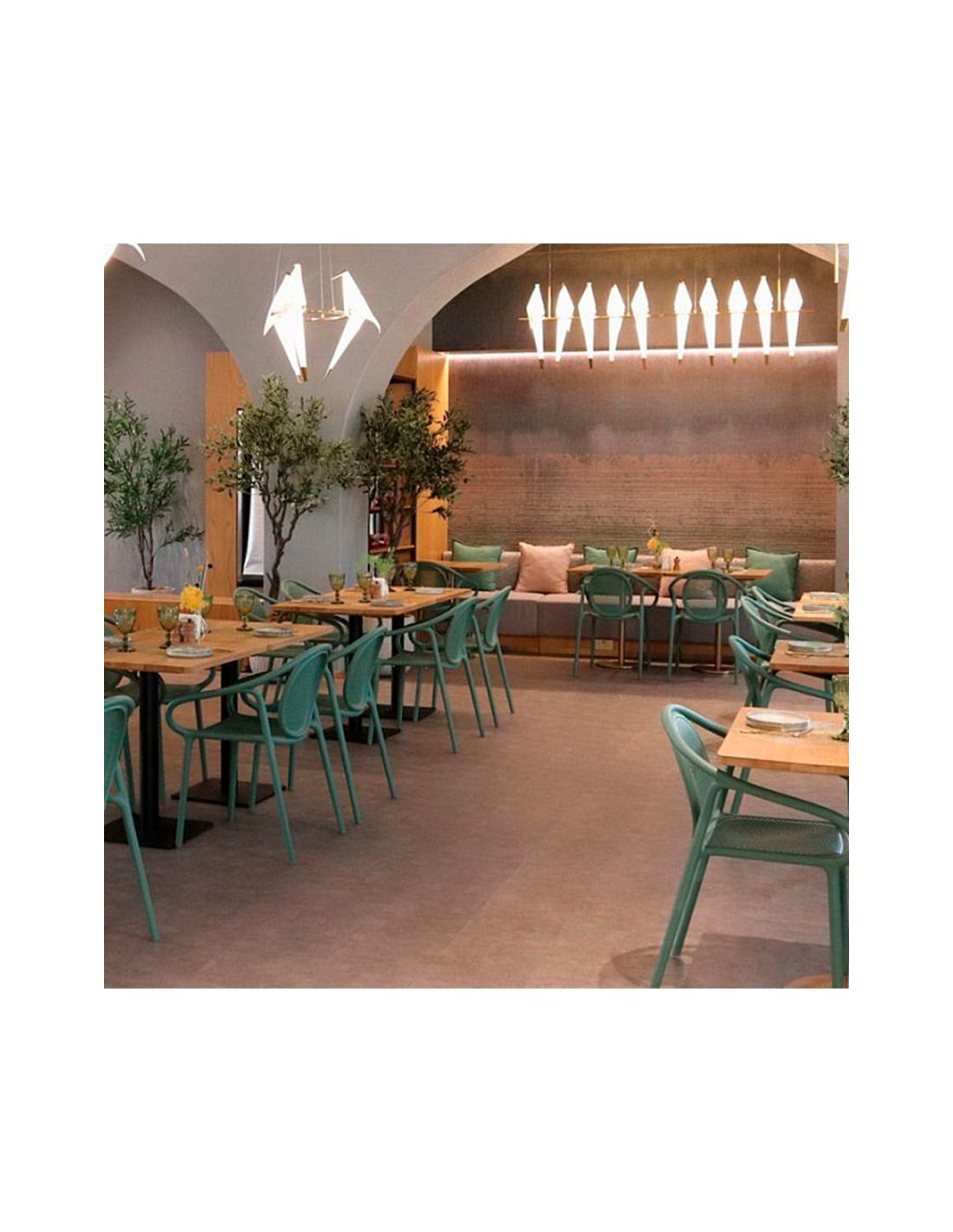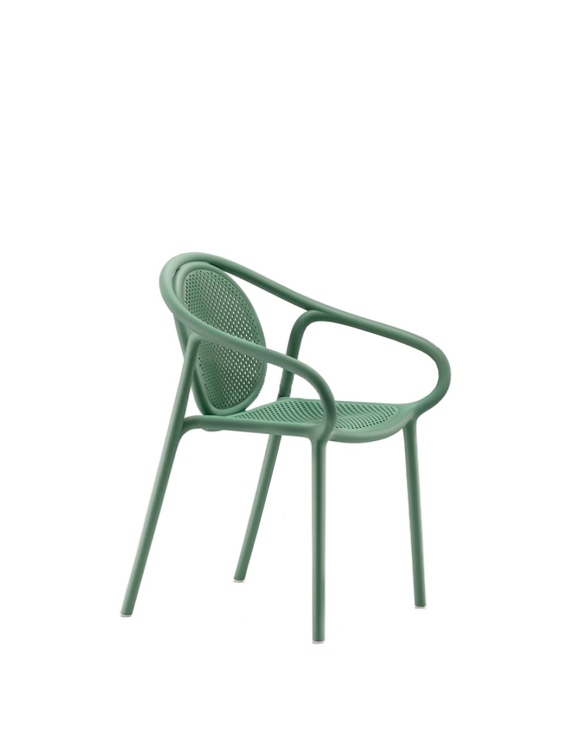 Країна: Італія. Дизайн: Eugeni Quitllet. Стілець широкого застосування. Підходить як для внутрішнього, так і для зовнішнього використання. Стілець для кафе, барів, ресторанів біля води, спа-салонів. Може використовуватися на будь-якій терасі, в саду. Міцний, легкий, стійкий до ударів та вологи. Дихаюче сидіння і спинка роблять його повітряним і забезпечують комфорт. Матеріал: литий поліпропілен, посилений скловолокном. Модель з підлокітниками. Стілець може поставлятися в різних кольорах. Максимальне навантаження: 120 кг. Гарантія: 3 роки.