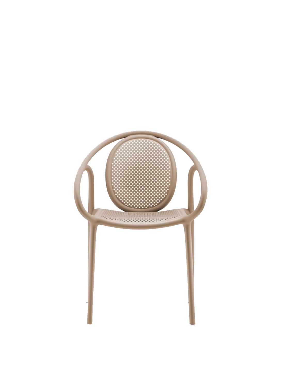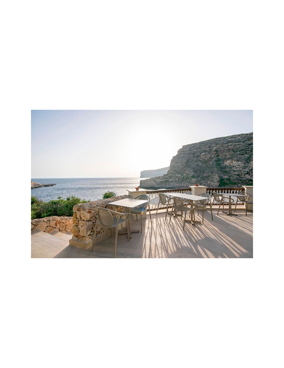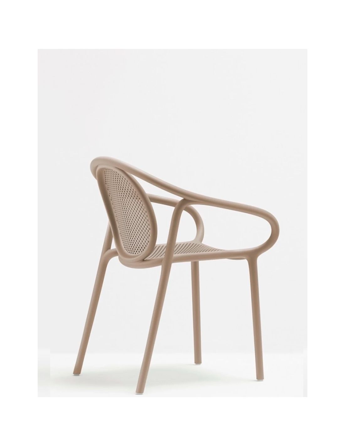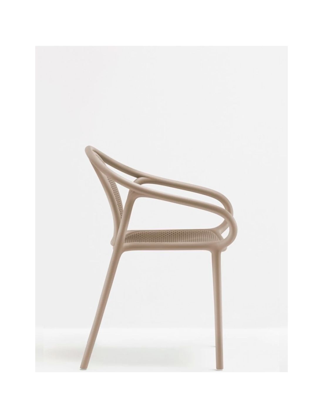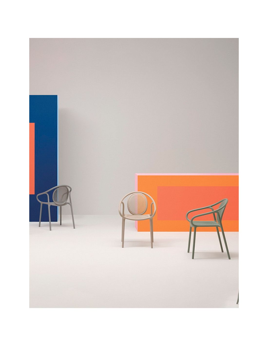 Країна: Італія. Дизайн: Eugeni Quitllet. Стілець широкого застосування. Підходить як для внутрішнього, так і для зовнішнього використання. Стілець для кафе, барів, ресторанів біля води, спа-салонів. Може використовуватися на будь-якій терасі, в саду. Міцний, легкий, стійкий до ударів та вологи. Дихаюче сидіння і спинка роблять його повітряним і забезпечують комфорт. Матеріал: литий поліпропілен, посилений скловолокном. Модель з підлокітниками. Стілець може поставлятися в різних кольорах. Максимальне навантаження: 120 кг. Гарантія: 3 роки.